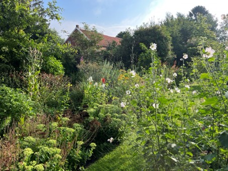 Een sloot en een natuurlijke vijver met moeras- en waterplanten geven de tuin een eigen, rustige uitstraling. De grote rijkdom aan wilde bloemen trekt veel insecten aan, wat weer tot vreugde is van de vogels die hier broeden en opgroeien, zoals de roodstaart en de vliegenvanger.