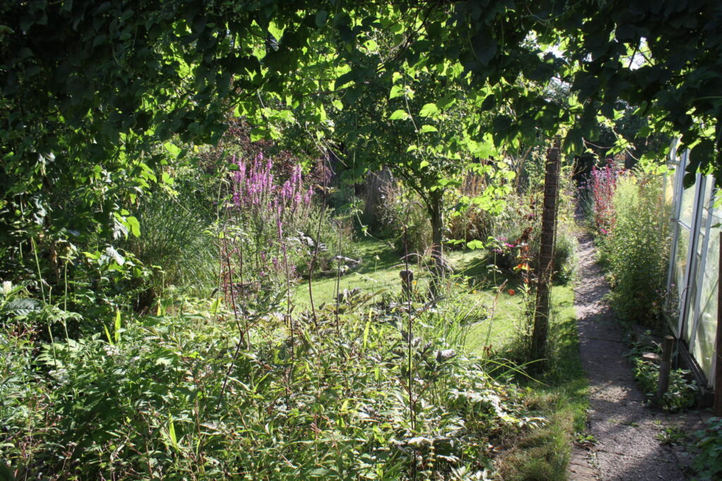 In de tuin bevindt zich een bescheiden plantenkwekerij en in de kassen kan rustig worden rondgekeken om te zien hoe de groentes groeien. Achter in de tuin verandert de sfeer opnieuw: onder bomen en struiken domineren varens, grassen en allerlei kruipplanten, wat zorgt voor een meer bosachtig gevoel.