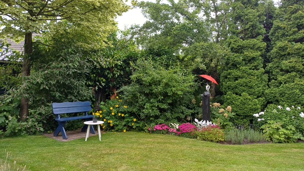 Ginkgo biloba, dat is de naam van de tuin van Roelof en Hennie Luttel in Bellingwolde. Genoemd naar de Japanse notenboom die in de voortuin staat. Inmiddels heeft de boom voor het huis gezelschap gekregen van een kleiner soort en staan er in de achtertuin nog een aantal in potten.
