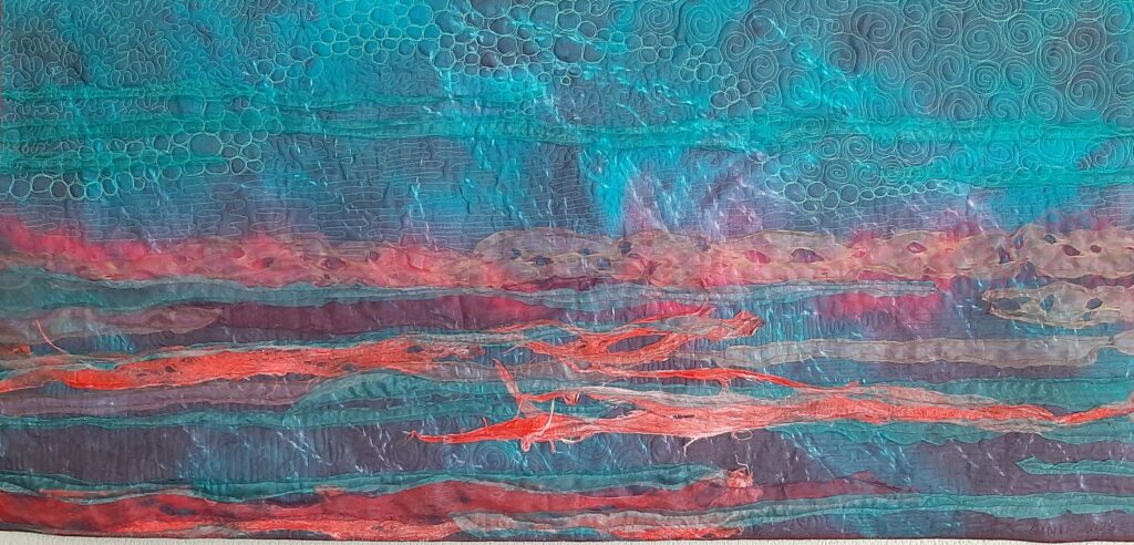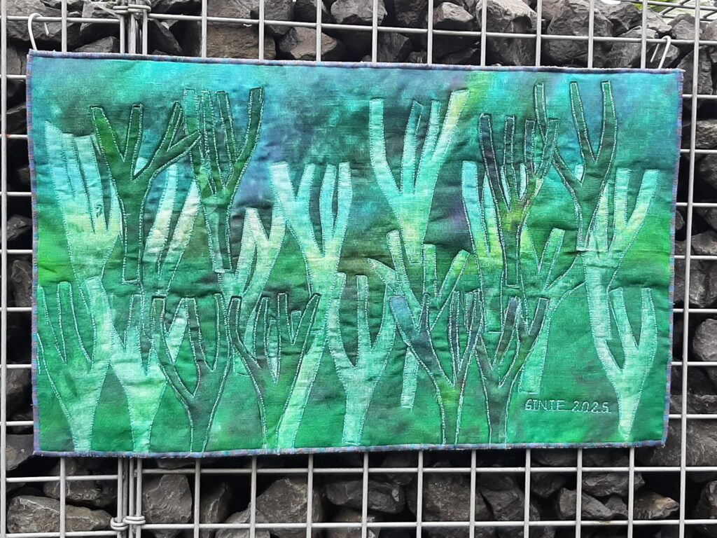 In de zomermaanden creëert zij een kleurenpallet in de tuin, door middel van kleurige bloemen borders. De natuur geeft haar inspiratie. Vormen en kleuren komen terug in haar textielwerkstukken, soms ingetogen, maar meestal met veel kleur.